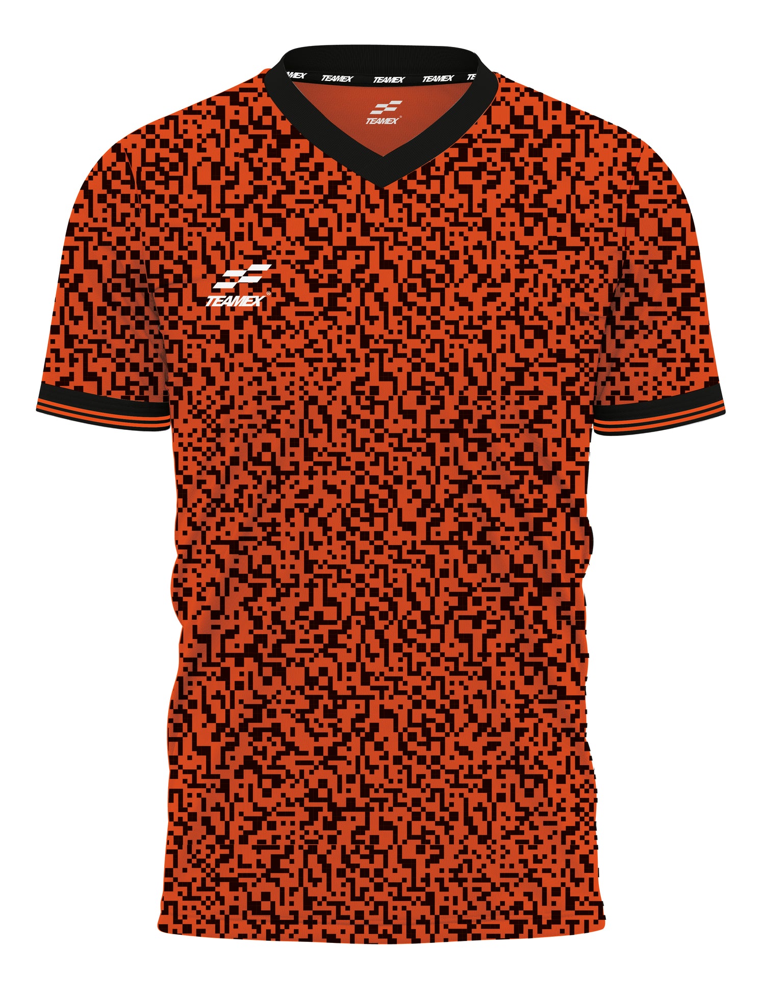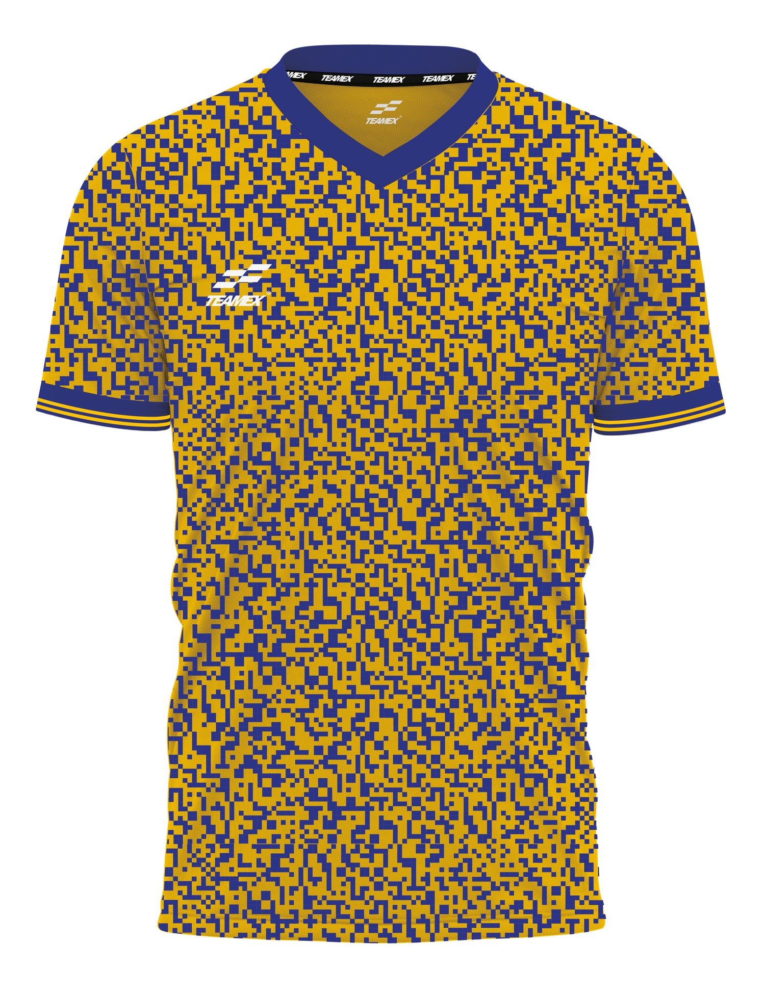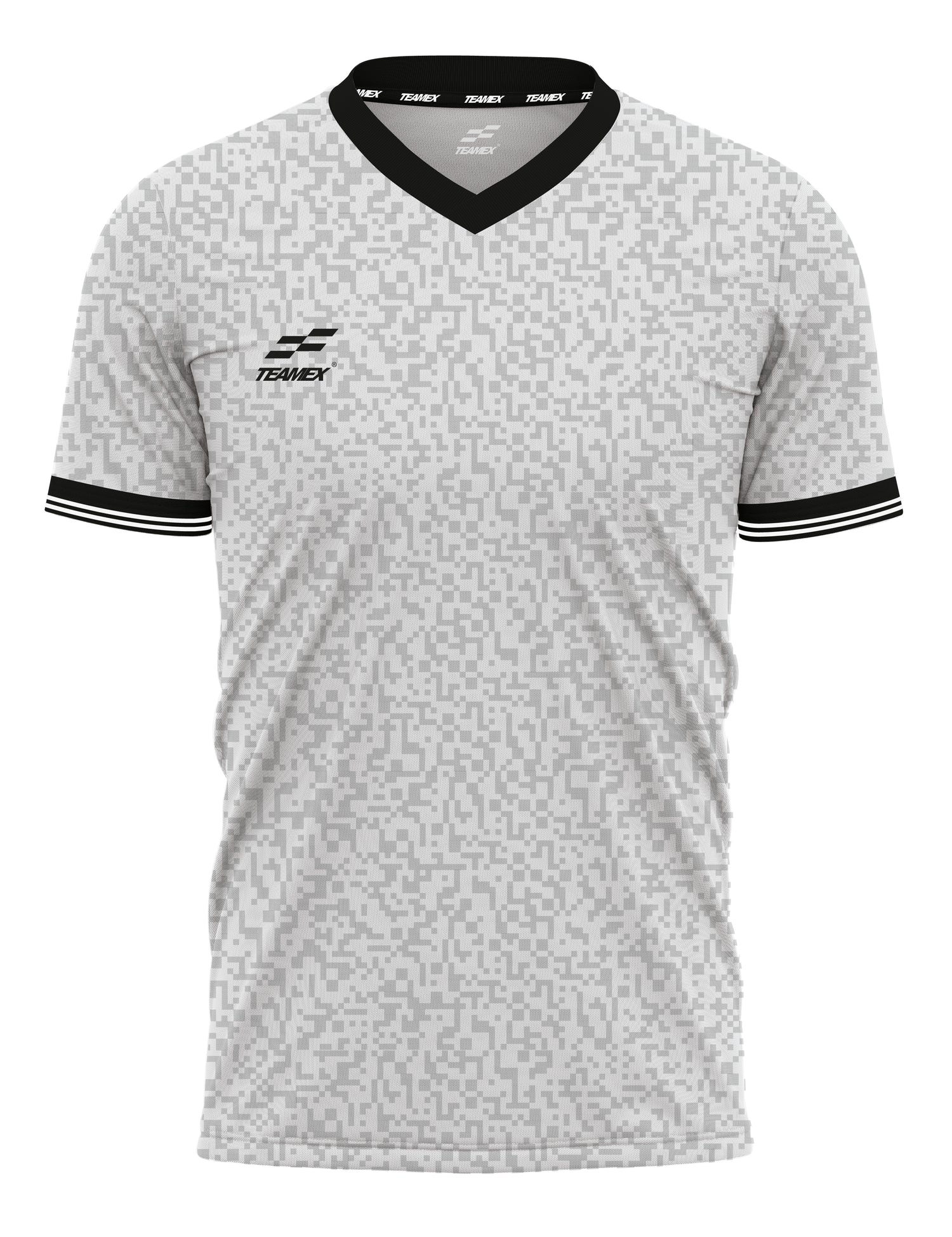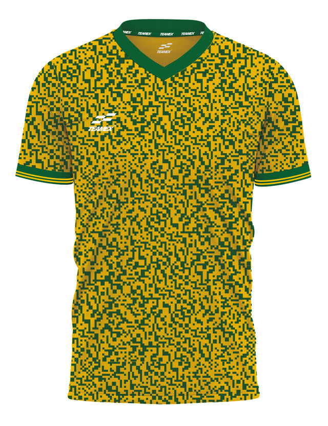 With a jarring two colour all over pixel graphic, the Legacy jersey is complimented by a traditional over lapping V-neck collar & striped cuff.