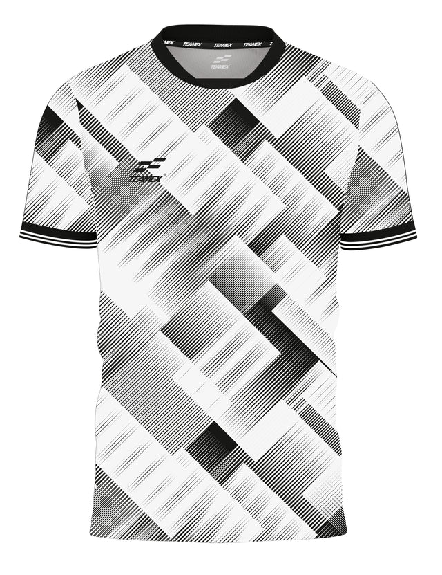 With an all over pattern inspired by movement & contemporary design, the Synergy jersey boasts a hybrid V-Neck collar with striped cuff.