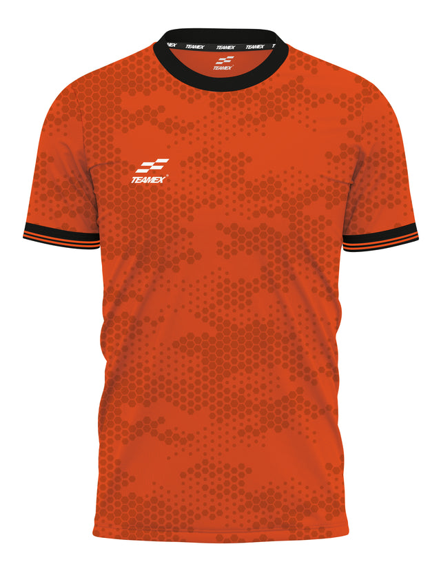 Valour's tonal all over camo pattern is made up of hexagons, inspired by the panels on a traditional football that carry the spirit of the game into contemporary design. The jersey is completed with a crew neck & striped cuff.
